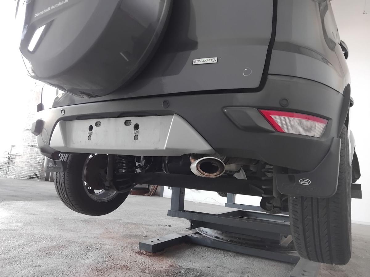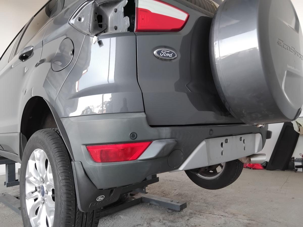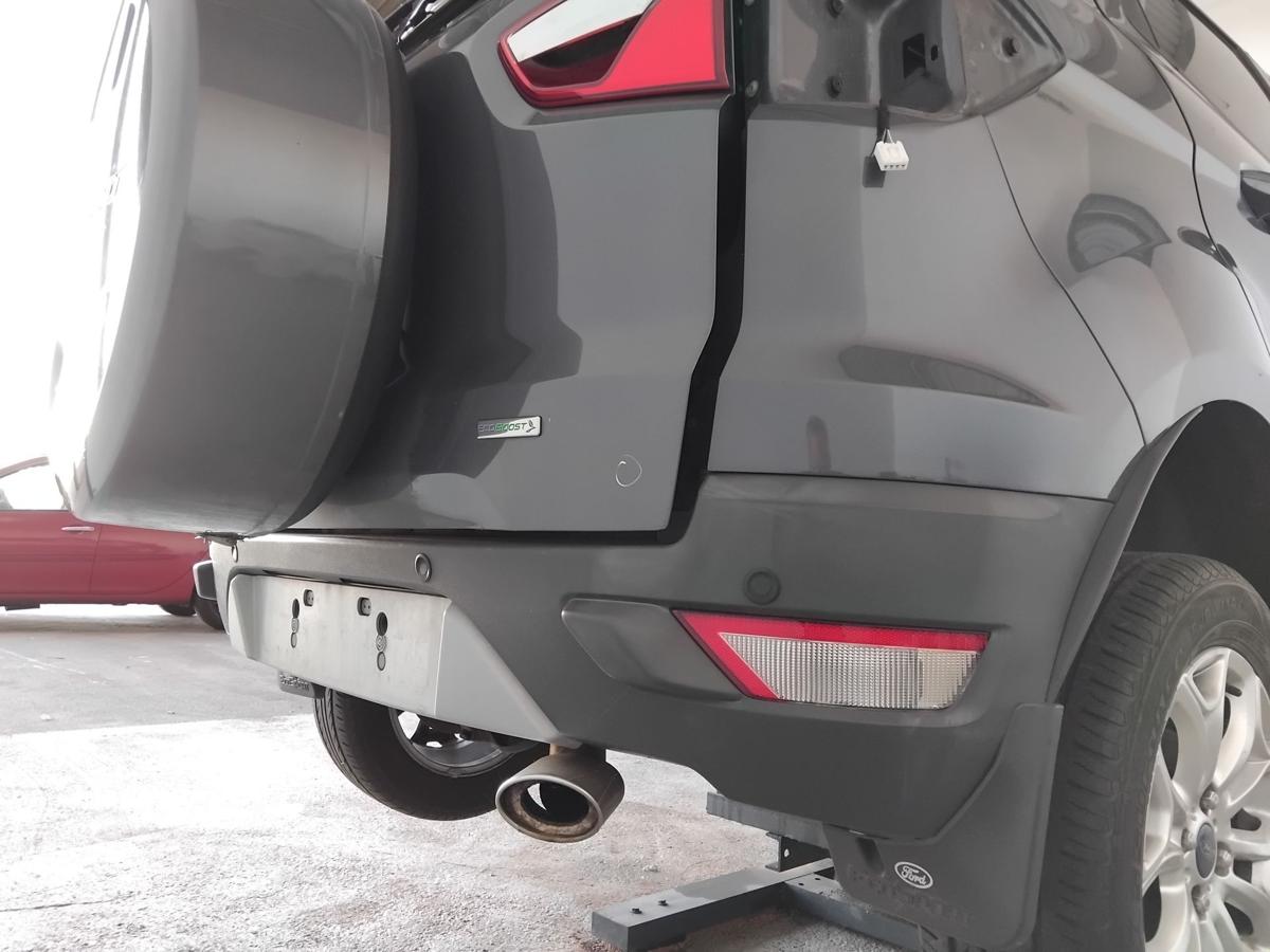 Ford Ecosport 2 JK8 Bj.2016 original Stoßfänger Stoßstange hinten unlackiert/smokegraumetallic teillackiert, mit Einparkhilfe inkl. 4 PDC-Sensoren, Lackschäden, Kratzer, genauer Zustand erst nach Demontage sichtbar