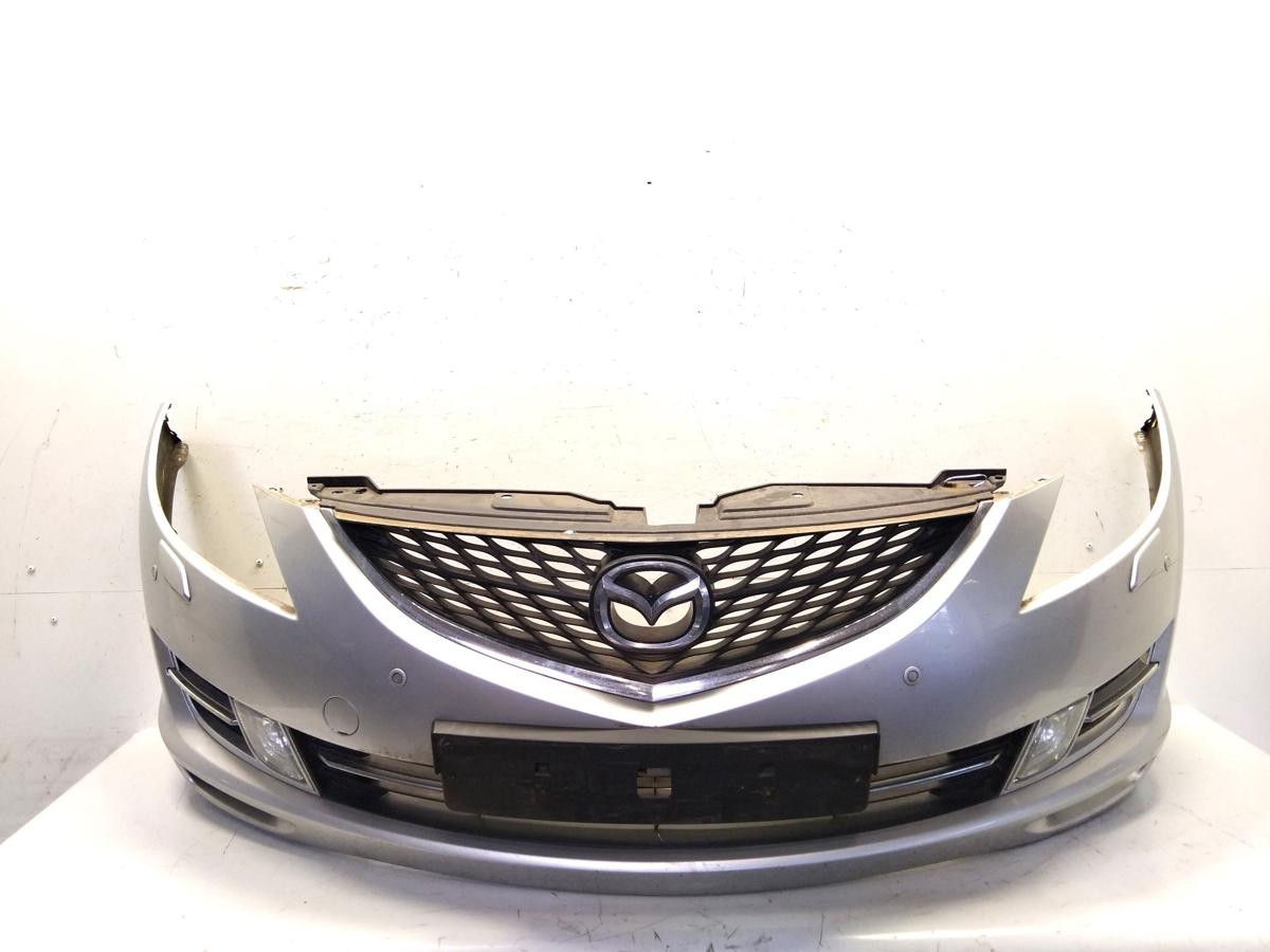 Mazda 6 GH Bj.2007 original Stoßstange Stossfänger vorn mit Grill, silbermetallic, für Fahrzeuge mit Scheinwerferreinigung und Parkhilfe PDC (inkl.Scheinwerferreinigungsdüsen/-hubzylinder und Abdeckkappen, inkl. 4 PDC-Sensoren), inkl. 2 Nebelscheinwerfer, Lackschäden, Kratzer, Halter eingerissen