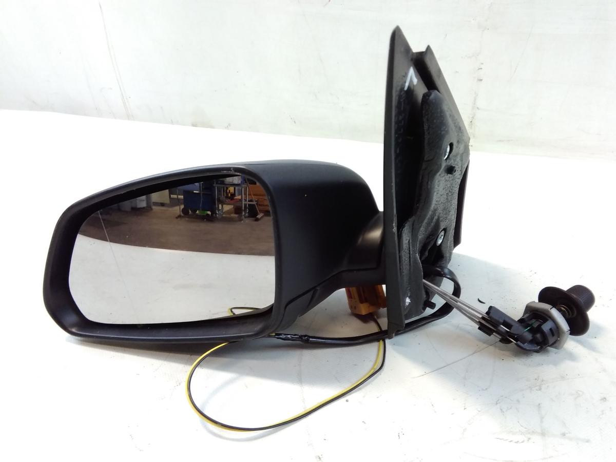 VW Polo 9N3 Bj.2006 Außenspiegel links manuell von innen verstellbar, schwarz unlackiert, mit weißen Seitenblinker, Gebrauchsspuren
